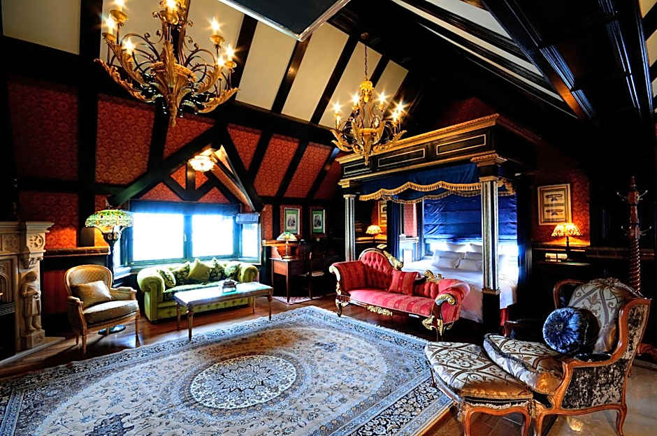 Spacious room includes a king-size bed, a flat-screen TV, a fireplace, a mini-bar, an electric kettle and private bathroom.